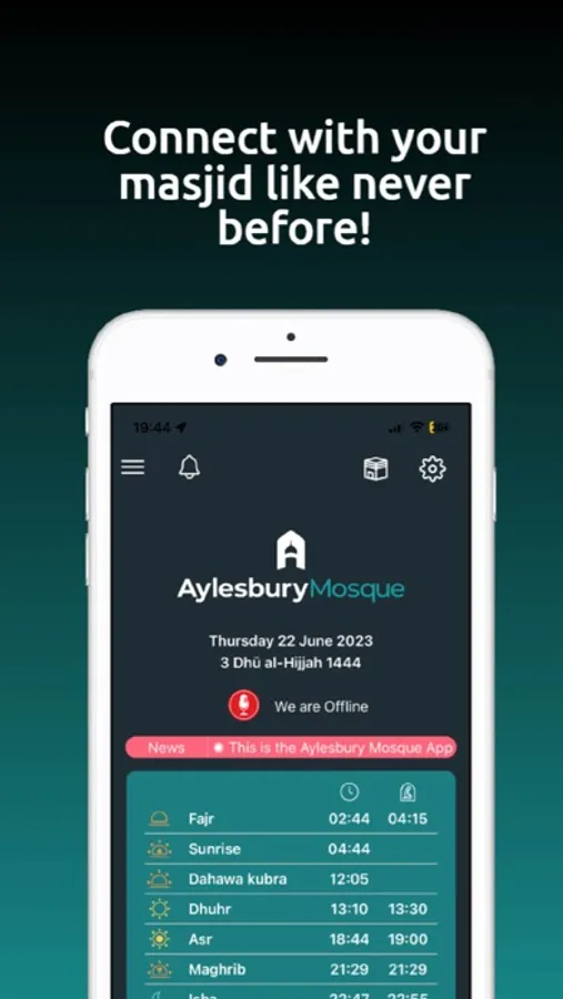 • Keep up to date and view real-time news from the Mosque on the home screen.