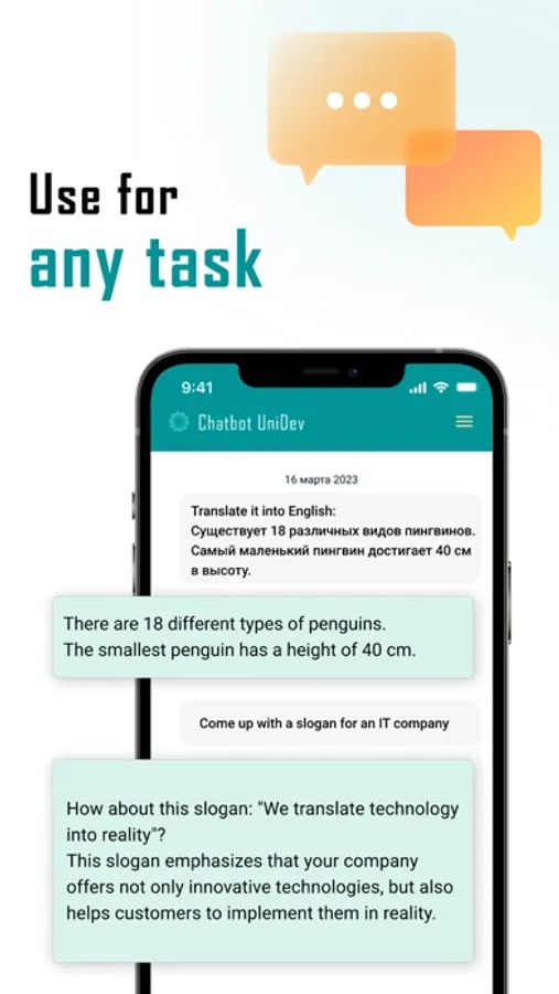 1. Умные разговоры: Общайтесь естественно и последовательно с Chatbot UniDev, который обучается и адаптируется к вашим предпочтениям и потребностям.