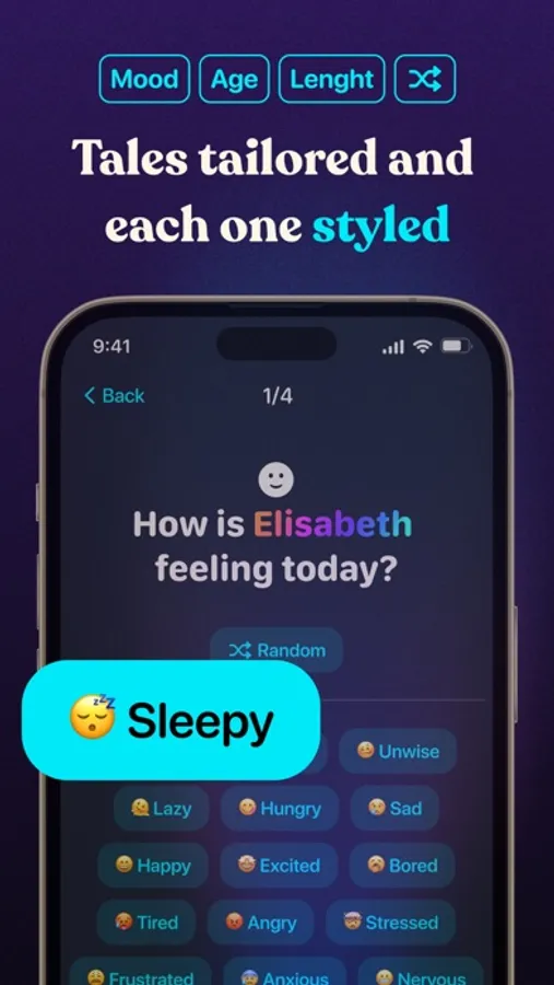 "Pajama" makes bedtime effortlessly beautiful. Choose a story, tap "Quick Generate," or effortlessly customize it.
