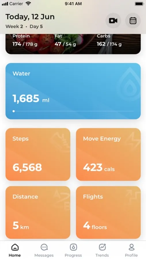 The app integrates with Apple Health to show your daily activity - distance, steps, active energy, and flights to help you better achieve your goals.
