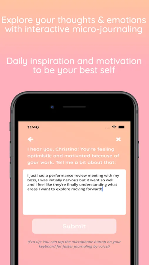 Three ultra low-friction ways to journal your thoughts journal your thoughts & feelings interactively in bite-sized chunks using our unique research-backed intelligent AI journalling system: