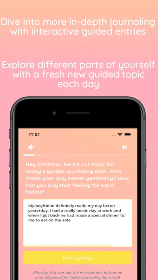 3. Guided Entries: Each day you receive a new motivational prompt to kick off a fresh journalling session
