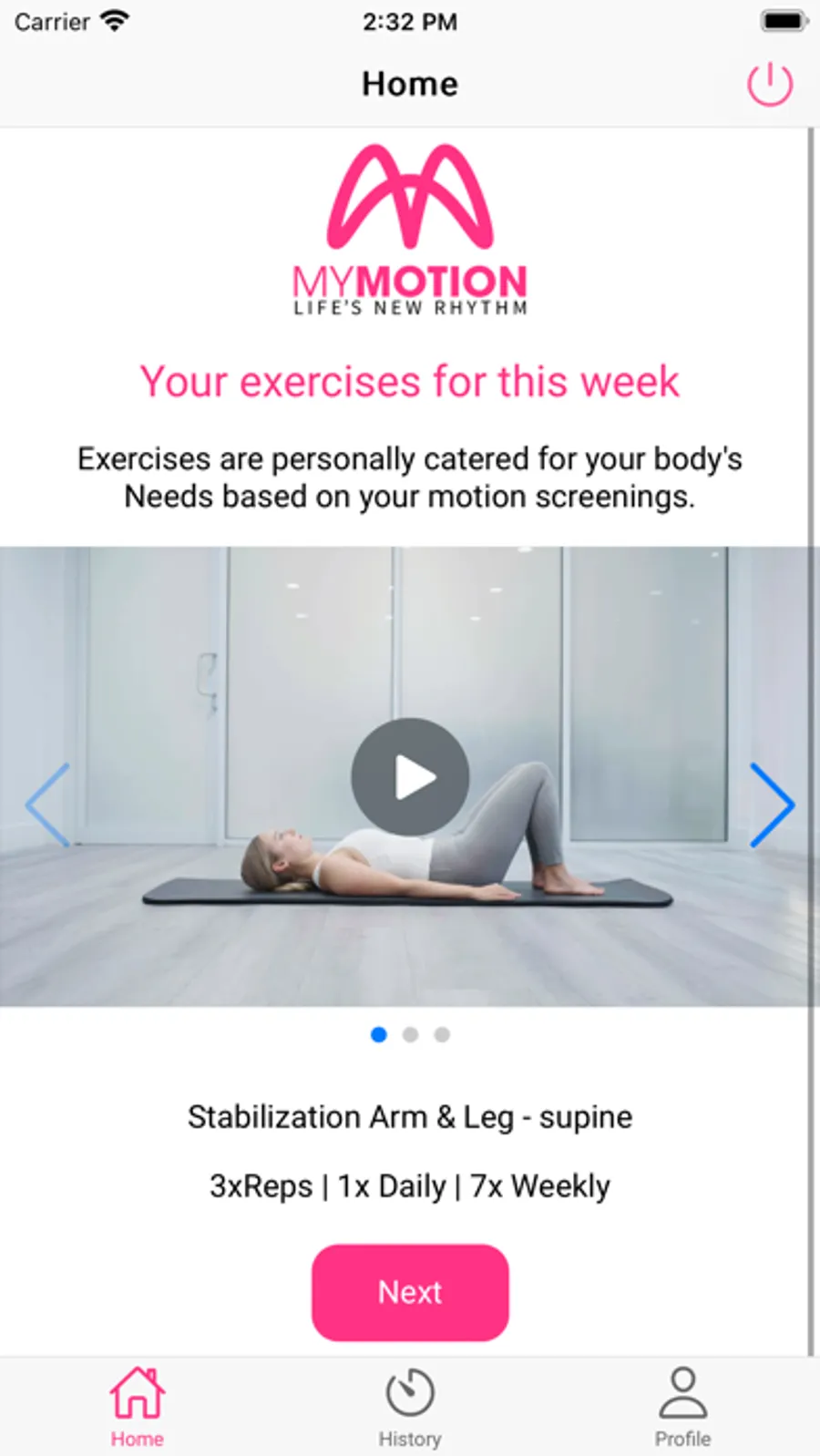 Motion specialists screen a client using the MyMotion Business App. Three targeted exercises are presented as a result of the screening process, processed by the revolutionary MyMotion "human code" and AI.