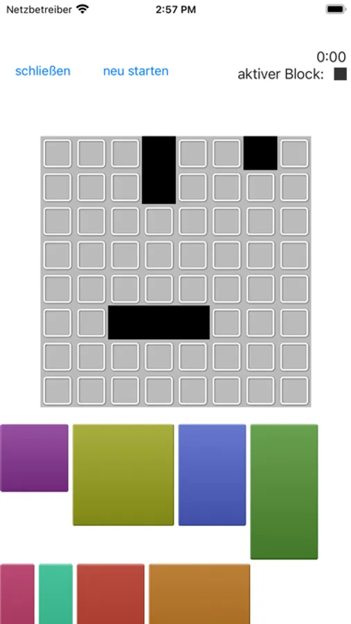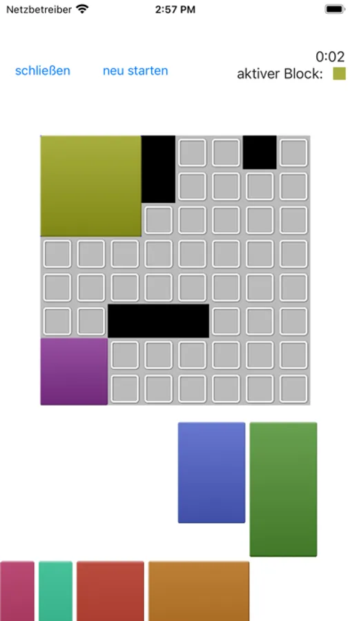 In blocked geht es darum, alle Blöcke auf ein Spielbrett zu legen, aber Vorsicht: Du kannst die Steine nur dort ablegen, wo kein schwarzer Block ist! Deine Aufgabe besteht darin, die verfügbaren Blöcke so zu platzieren, dass sie perfekt in das Feld passen und das Spielbrett vollständig ausfüllen.