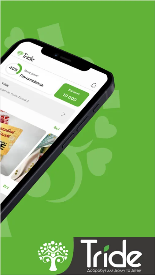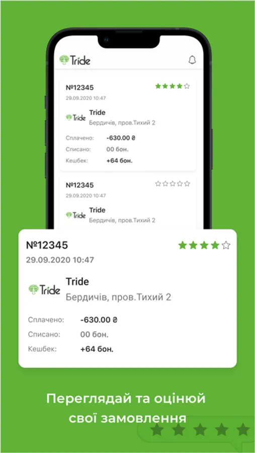 Завантажуючи додаток Tride, Ви стаєте частиною унікальної програми лояльності.