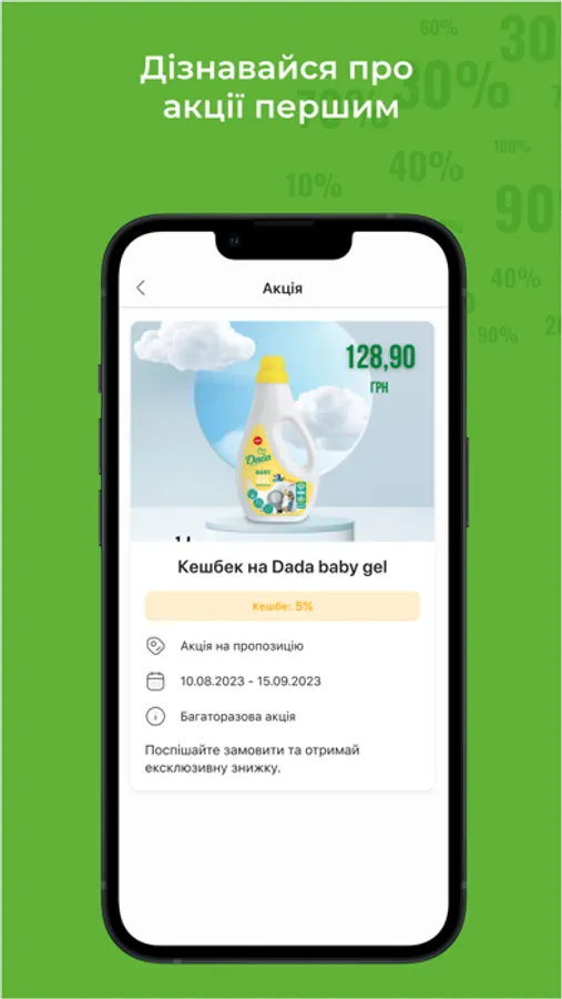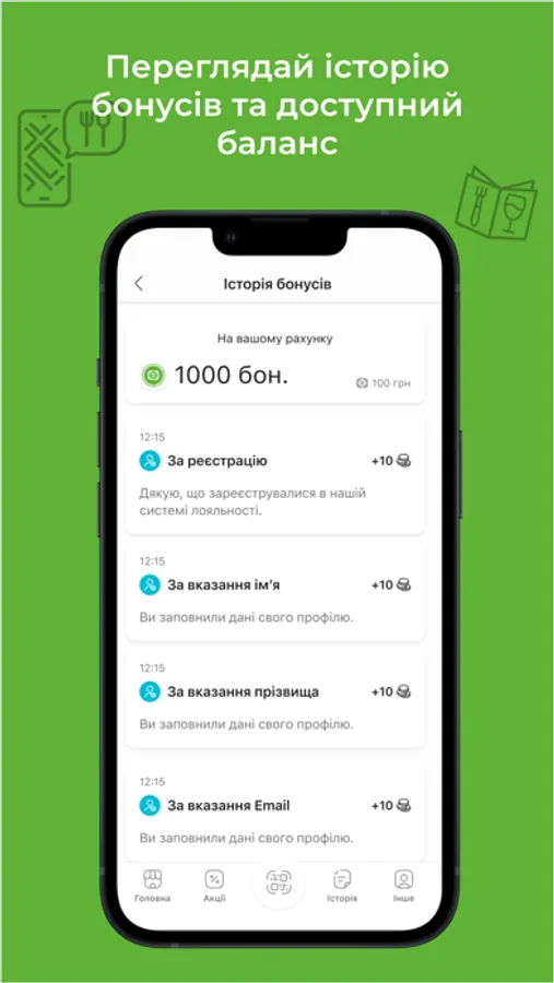 - Отримувати кешбек та бонуси за кожну покупку