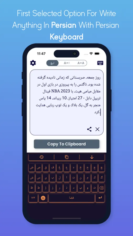 1. Persian Language Support: Seamlessly type in Persian characters, including letters, numbers, and symbols, all at your fingertips.