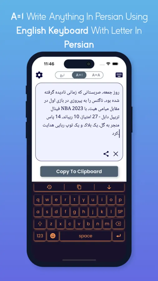 8. Multiple Layout Options: Choose from different keyboard layouts, including QWERTY, AZERTY,A=A, A=Persian latter, Persian letter keyboard and more, to match your preferred typing style.