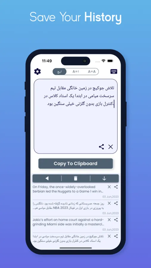 6. You can save your Persian text inside application it self. You can use your text for later use too. There is 3 mode on Persian Keyboard app.