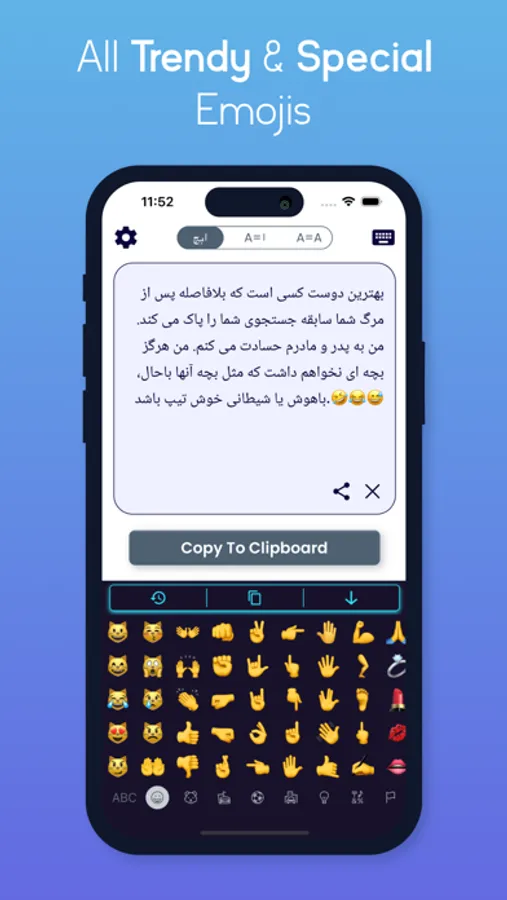 3. Emoji Integration: Add personality to your messages with a vast collection of emojis specifically designed for Persian communication.