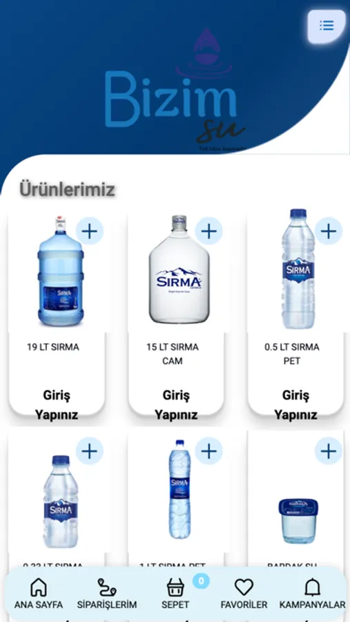 Bizim Su Mobil Sipariş Uygulaması ile sipariş vermek artık çok kolay! Damacana, Cam Damacana, Pet ve Bardak Su siparişlerinizi uygulamadan verebilir, kredi kartı ve kapıda nakit ile ödeme yapabilirsiniz.