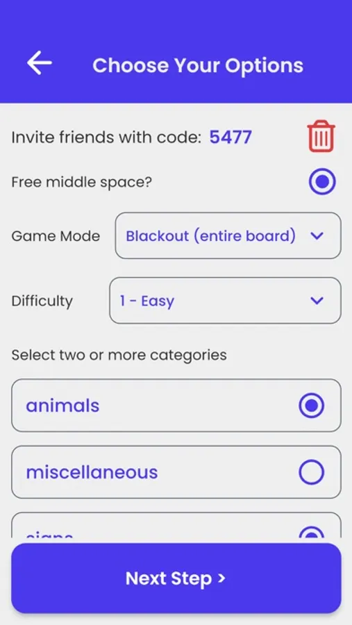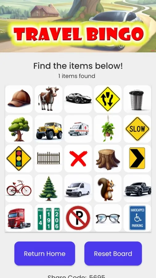 Every game consists of a randomly generated scavenger hunt using a bingo board with 25 squares. Your goal is to find each item and cover either a line or the whole board! You may be looking for a mailbox, horse, convertible car, airplane, stop sign, fire engine, and more. You can even preview a sample board before starting. And with billions of possible board combinations, every game you play will be unique and exciting.