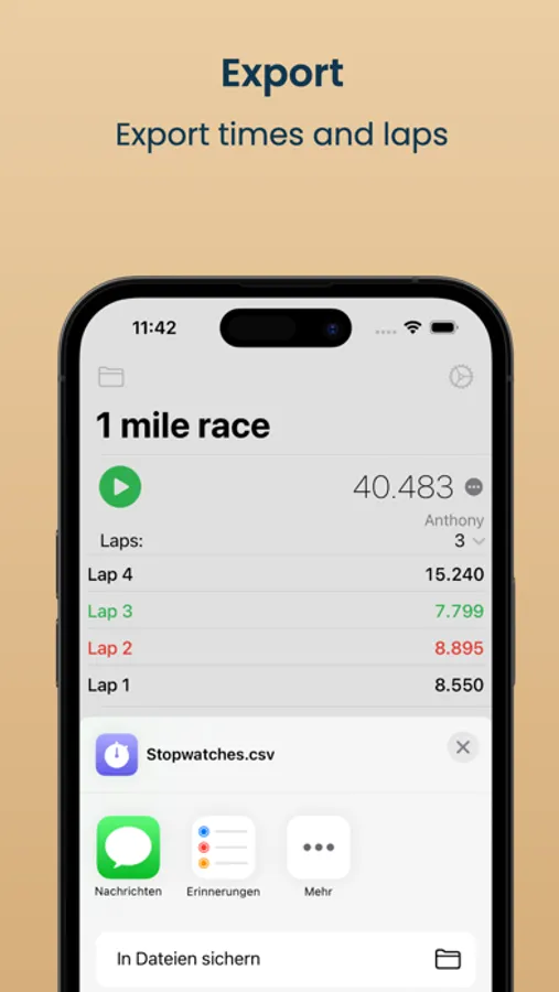 Need to analyze your recorded times? Stopwatch lets you export your data as a CSV file, enabling seamless integration with your favorite spreadsheet software. Take control of your time records and gain valuable insights to improve your performance.