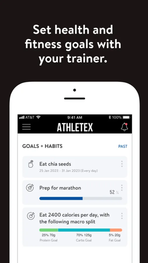 With the Athletex App, you can start tracking your workouts and meals, measuring results, and achieving your fitness goals, all with the help of your personal trainer.