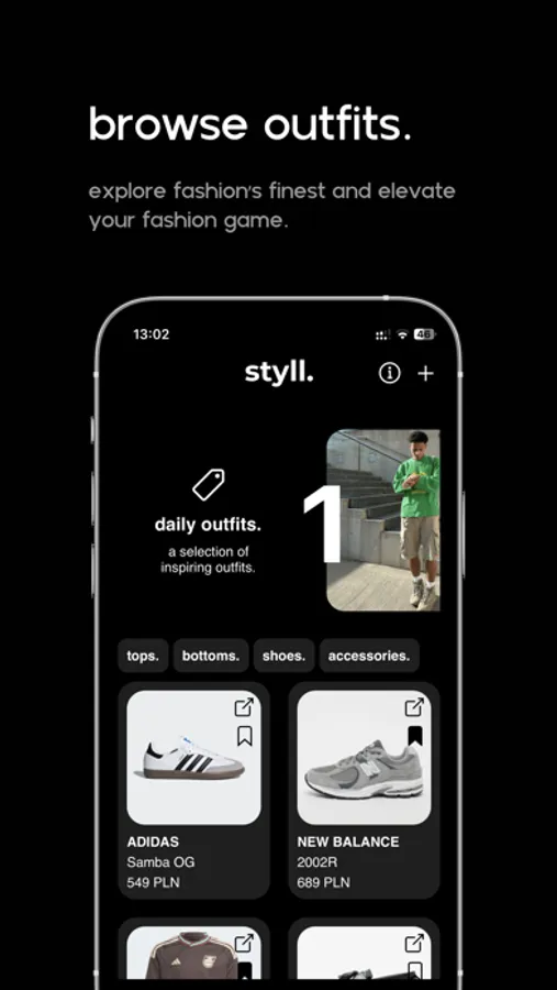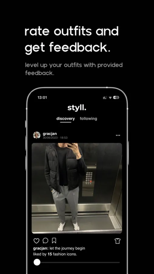 With styll, you have the power to rate outfits, exchange ideas, and discover endless inspiration. Our unique feature sets us apart: every post you add requires affiliation to three key elements: a top, a bottom, and an accessory. This ensures that every outfit shared on styll is a complete look, making it easier for users to find their perfect style.