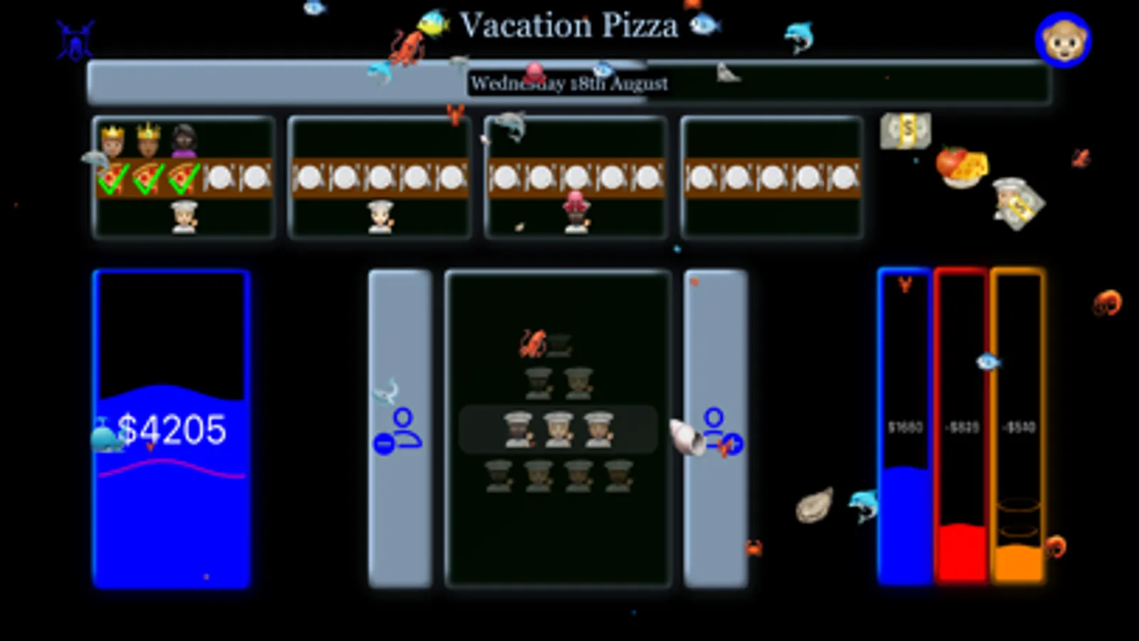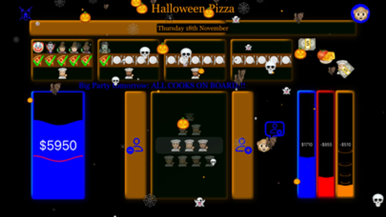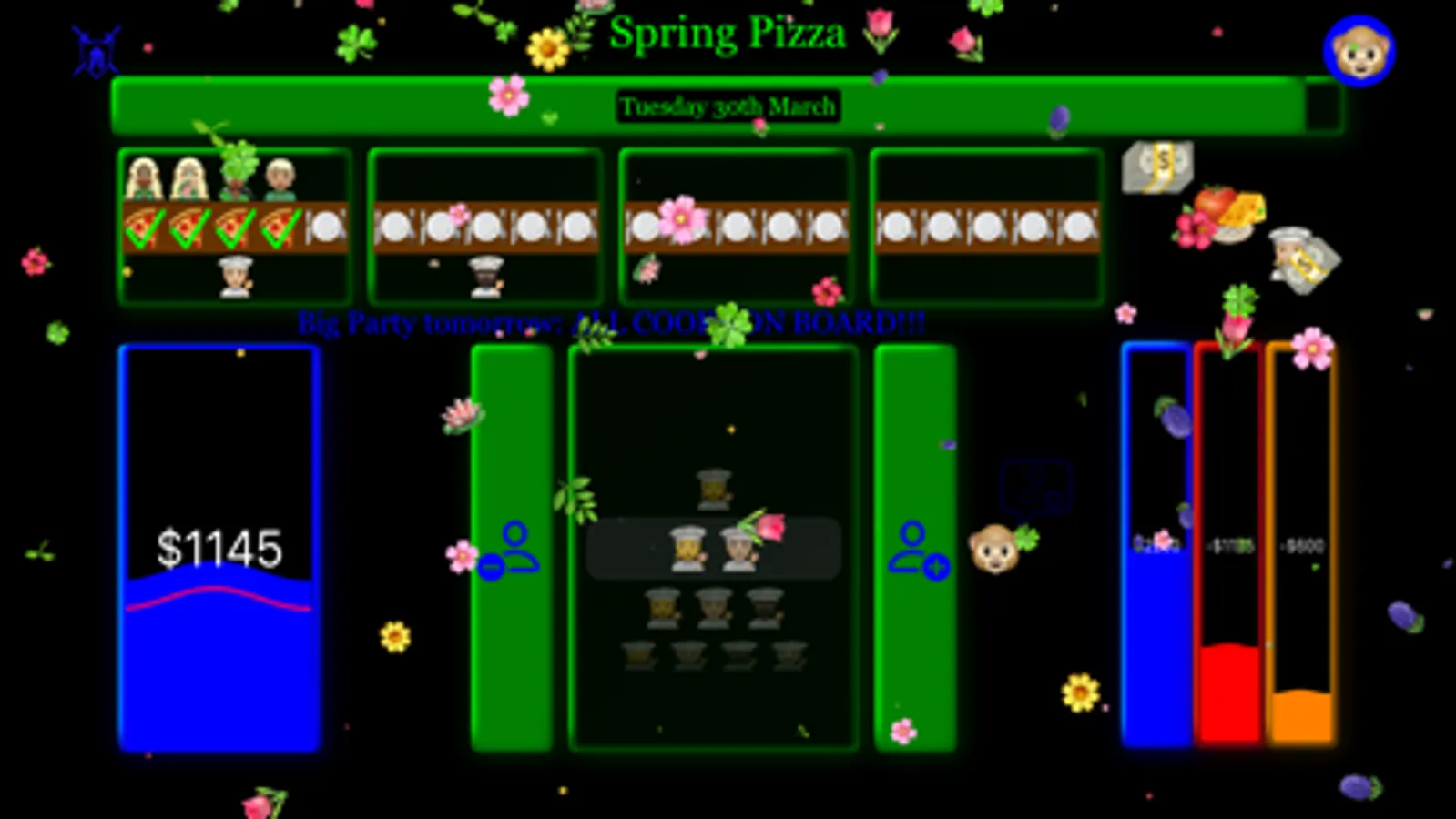 Pizza Enterprise combines elements of finance and business planning in a captivating way. Each day, customers come to your restaurant for some mouth-watering pizza. Your primary goal is to adjust the number of cooks based on the influx of customers. Remember, each cook can serve up to five customers! This balancing act is vital because even if there are no customers, every cook costs you $2 per table.