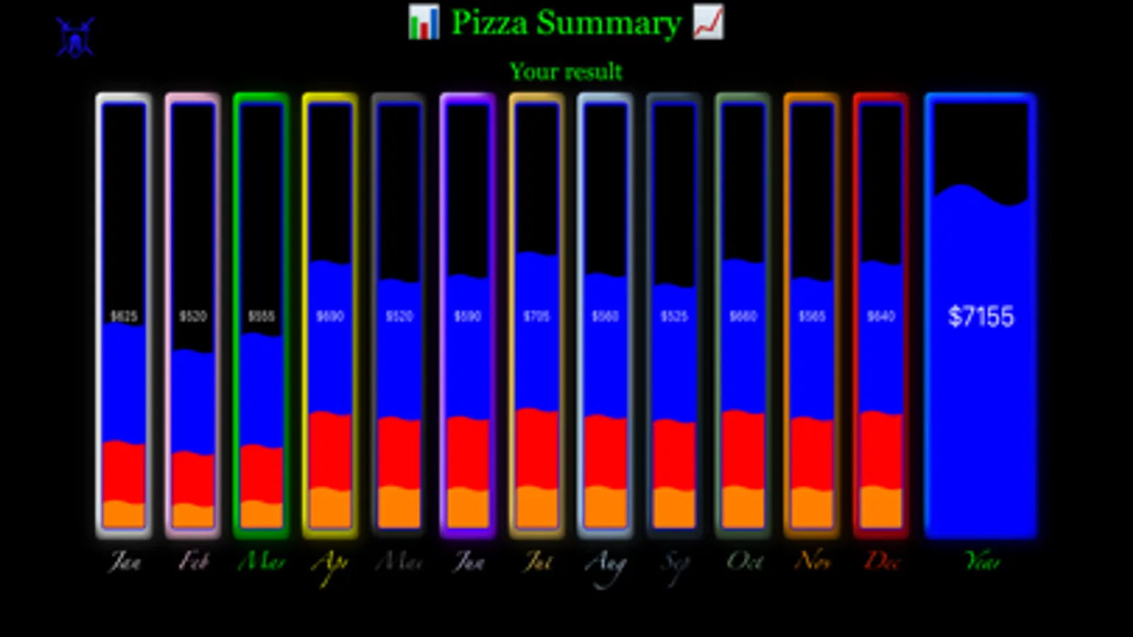 Every pizza served will earn you $10, but remember, the ingredients cost you $5. It's all about the careful calculation of costs and profits! At the end of each month, you'll be presented with a detailed financial result, both monthly and cumulative. This feature helps you understand the financial dynamics of your business and strategize for the coming months.