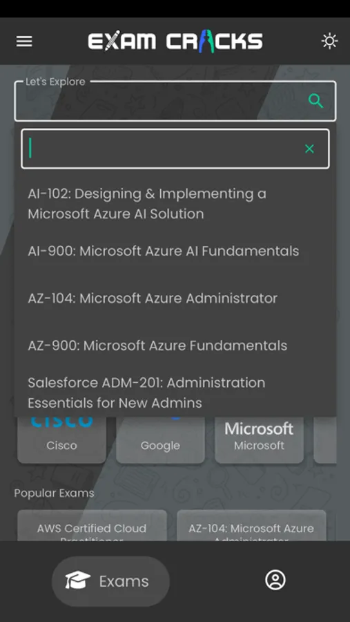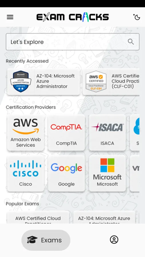 Exam Cracks is an online educational app designed to help students prepare for various academic and certification exams. Our app provides a wide range of resources, including practice exam dumps, expert advice through discussion forums, and progress indicators to help students achieve their academic goals.
