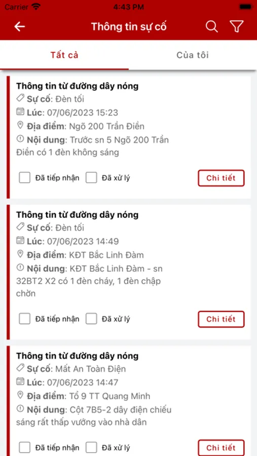 Ứng dụng phản ánh sự cố và đánh giá về chất lượng hệ thống chiếu sáng.