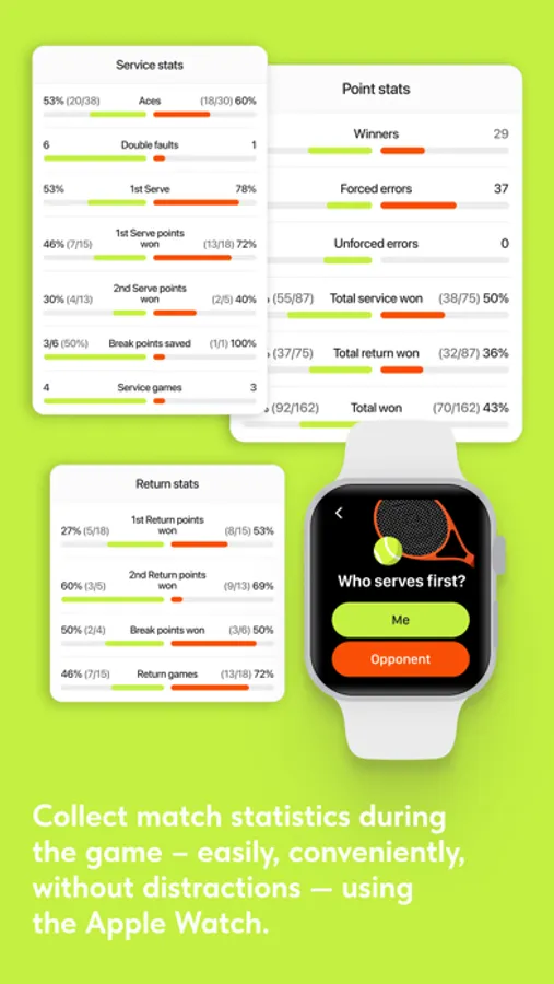 Don’t want to track the match yourself? No problem. Your coach, sparring partner, or a friend can follow the game and input data in real time using the First Serve app on iPhone. Whether you're training solo or with support, you’ll get the full picture of your performance.