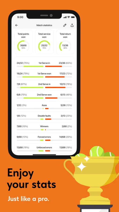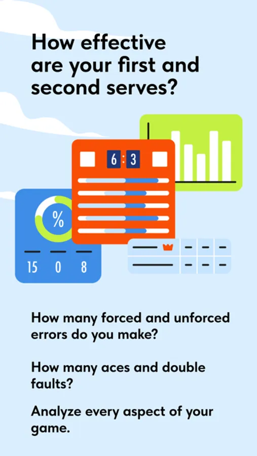 Use the data to spot trends, evaluate your consistency, and identify areas for improvement. First Serve helps transform raw performance into actionable match analysis. It gives you the confidence to work on specifics like serve accuracy, rally outcomes, and shot reliability — key metrics every player should understand.