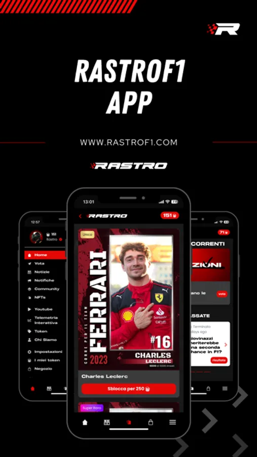 Ma non finisce qui! Vota e partecipa alle decisioni attraverso le votazioni interattive, esprimendo la tua opinione su questioni rilevanti all'interno del mondo della Formula 1. Colleziona NFT esclusivi, autentiche opere d'arte digitali che celebrano i momenti indimenticabili della storia del Motorsport. E segui il nuovo podcast CURVA SONORA, dove scoprirai i retroscena e la storia vera di chi lavora nel Motorsport e Formula 1.
