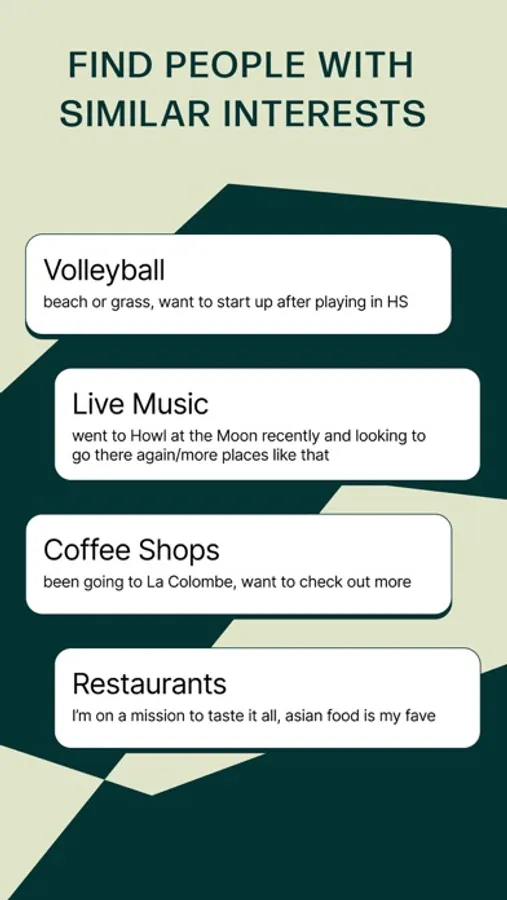 Find Like-Minded Individuals: Villager uses a smart matching algorithm that considers your specific interests to connect you with individuals who align with your passions and are located within Chicago. Discover kindred spirits nearby and start engaging in conversations that help you build a strong network of friends and acquaintances.