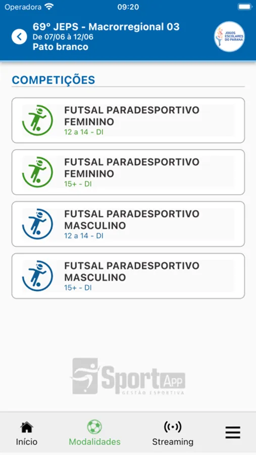 Neste APP é possível acompanhar todos os eventos e competições oferecidos e gerenciados pela Paraná Esporte, é possível visualizar os jogos, resultados, notas oficiais, locais de competição, locais de apoio, regulamentos entre outros.