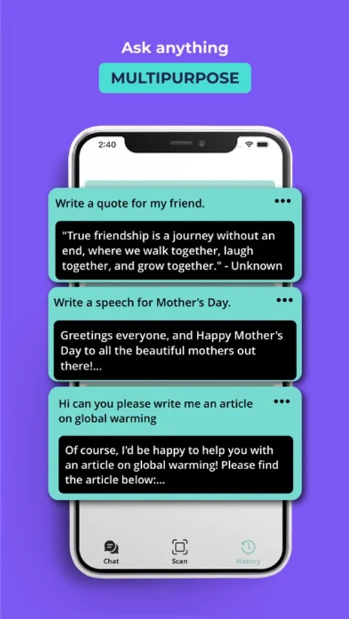 Introducing Writing AI, the ultimate tool to unleash your writing potential. Harnessing the power of GPT technology, our app offers a seamless writing experience with innovative features. Generate captivating ideas, craft compelling stories, and enhance your writing skills with ease. Scan documents effortlessly for editing and formatting. Explore our diverse prompts categories for inspiration across various genres. From fiction to academic writing, our AI-powered assistant provides real-time suggestions and constructive feedback. Elevate your writing journey with Writing AI and unlock your creativity. Download now for a transformative writing experience!