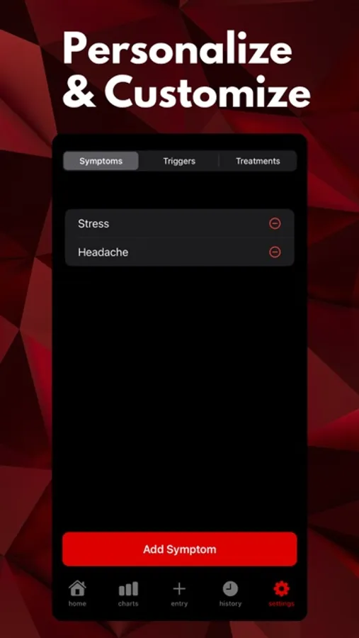 - Optional symptoms, triggers, and treatments tracking for a holistic perspective