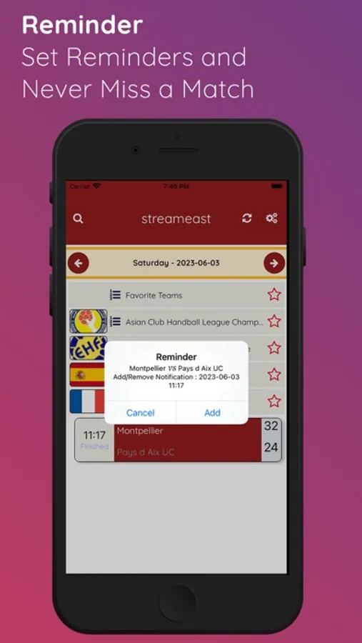 - Set Reminders: Never miss a match again! Set reminders for upcoming games and receive alerts to ensure you catch all the action.
