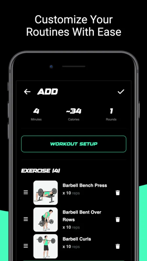Creating a new workout is a breeze. Simply give it a name, select your preferred exercises, and adjust the duration, number of rounds, and rests for each. Once you're satisfied, save your workout and get ready to sweat!