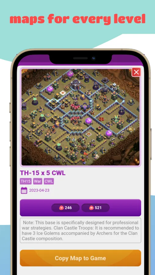From beginners to esports professionals, CoC Guide provides comprehensive content to help you build and copy strong bases. Gain confidence in your raid and war attacks with quick tips to enhance your attack and defense strategies. Share the app with your clan mates to level up your clan faster with more war wins and loot! We value your comments and feedback to make the app even better.