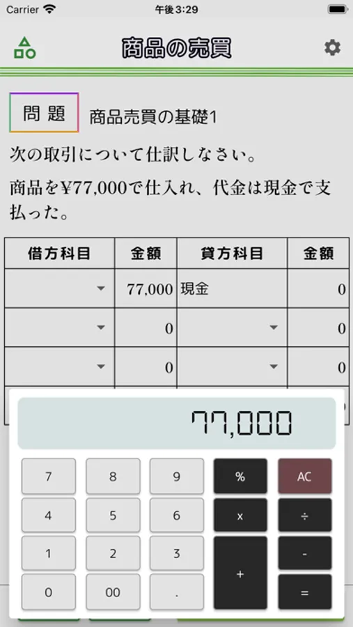 日商簿記3級の検定試験内容に準拠した、簿記の学習支援アプリです。