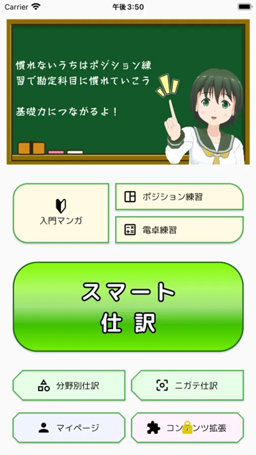 毎回ランダムで出題される「スマート仕訳モード」や、傾向別の内容で学べる「分野別仕訳」で、どんどん学習を進めよう。