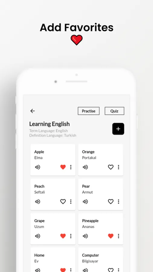 Try the favorites mode for the words you love a lot. Add words that are difficult to learn to favorites and learn more easily.