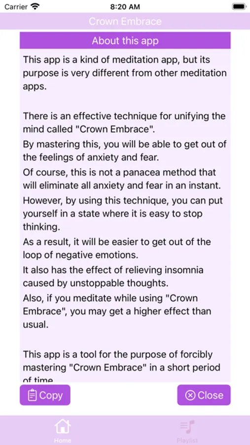 Also, while many meditation apps are designed to be used for a long time, this app is no longer needed after mastering "Crown Embrace" completely.