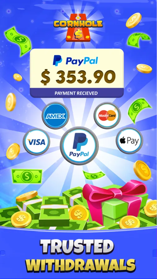 The Cornhole bag toss money game is free to download. Note that Cash tournaments are not available in the following states: AZ, AR, IN, IA, LA, ME, MD, SC, MT & SD.