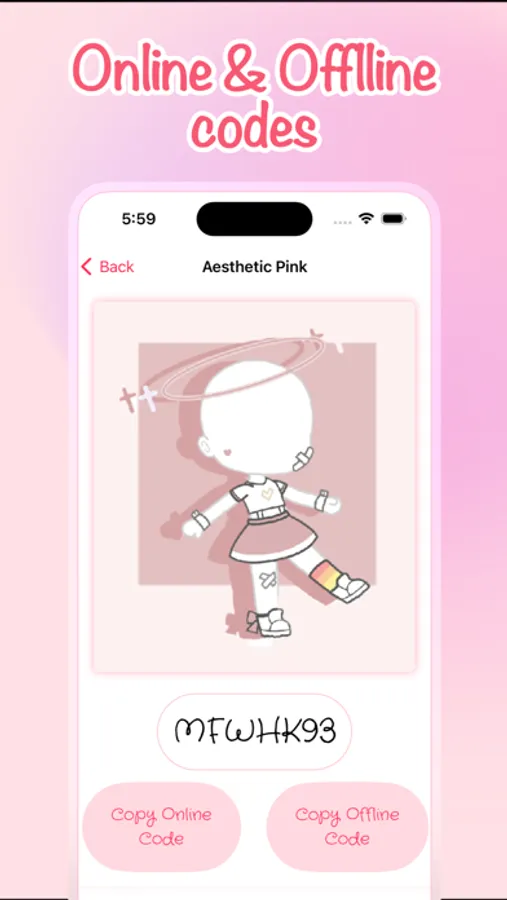 gacha Club Outfits Ideas features both online and offline codes. Easily access the codes for each outfit, allowing you to recreate your favorite looks with ease. No more struggling to find the right combination – we've got you covered! Just copy codes directly and use the in the Gacha app. Whether you're connected to the internet or on-the-go, our app works seamlessly in both online and offline modes, ensuring you have access to outfit inspiration anytime.