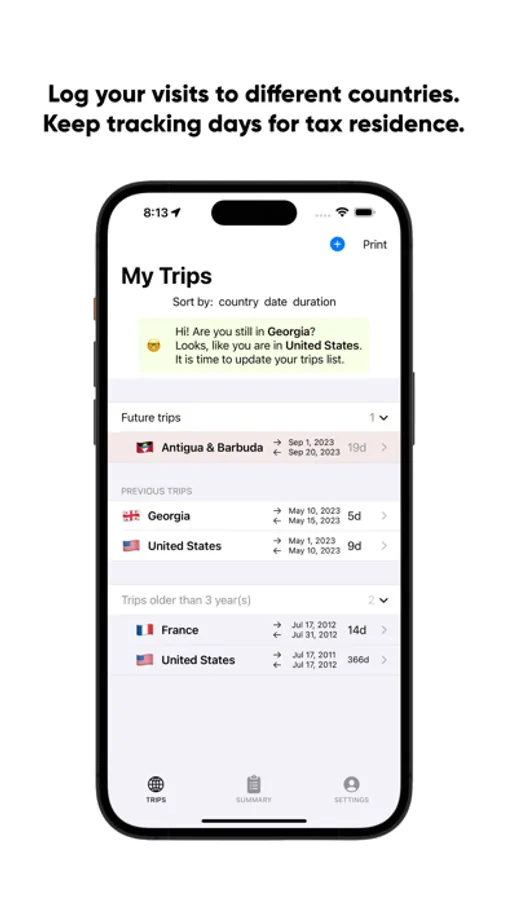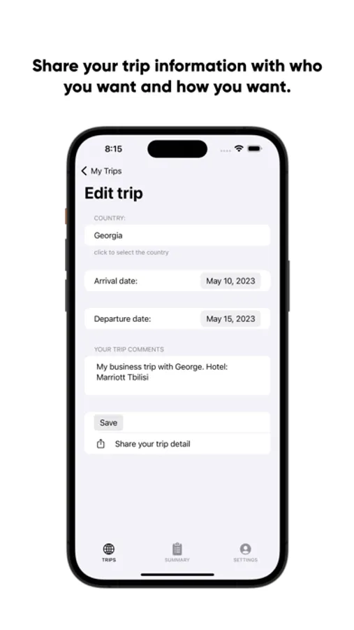 In future versions: log cities along your trip. Store expenses connected to each trip in one place and much more.