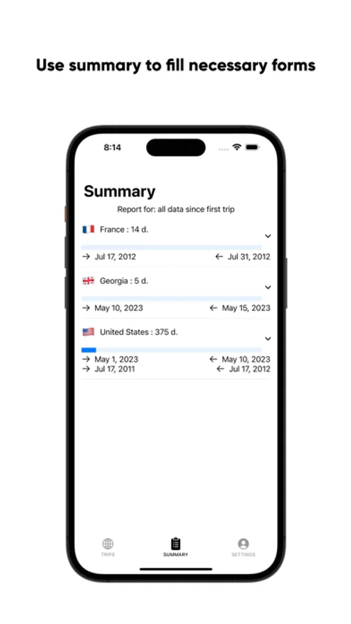 Track and count your travel days to different countries. Get information in one place for your future visa applications or something else. Separate Schengen area report.