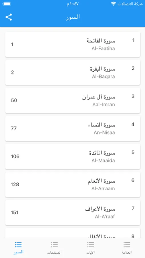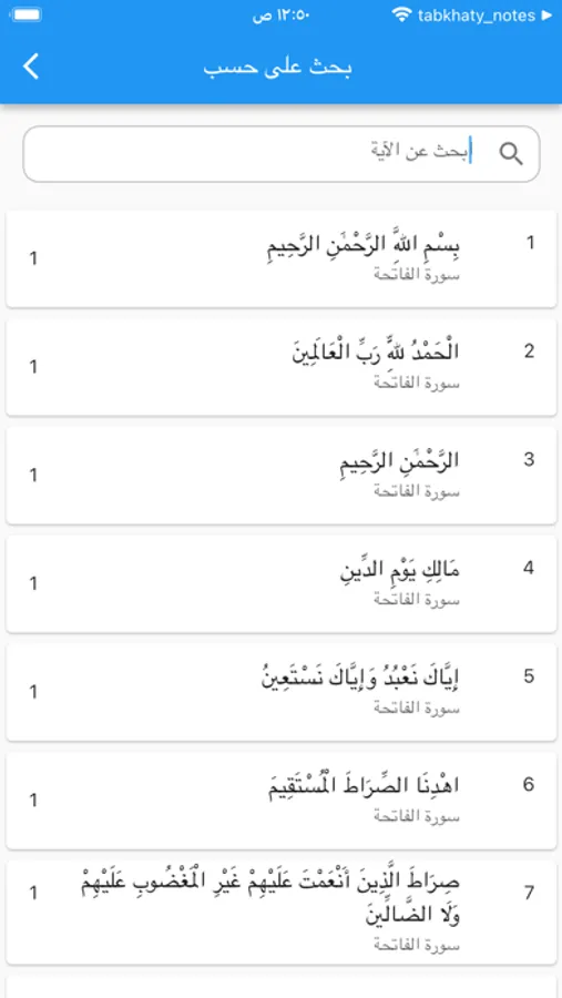 - إمكانية البحث حسب اسم السورة أو جزء من أي آية.