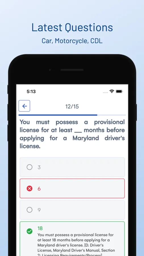 Our Maryland MD Driver Test Permit app , is easy to use and accessible from anywhere, on any device. You can practice on your phone, tablet, at home or on the go. And with our free and unlimited tests, you can practice as many times as you need to feel comfortable and confident for the real DMV Written test .