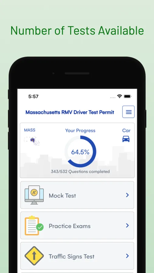 Our Massachusetts MA Driver Test Permit app , is easy to use and accessible from anywhere, on any device. You can practice on your phone, tablet, at home or on the go. And with our free and unlimited tests, you can practice as many times as you need to feel comfortable and confident for the real DMV Written test .