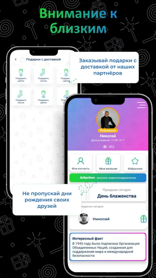 С Laffy ты будешь знать, какие праздники и какие подарки важны для твоих друзей из твоего списка контактов. По необходимости получать уведомления о важных событиях близких людей из списка избранных.