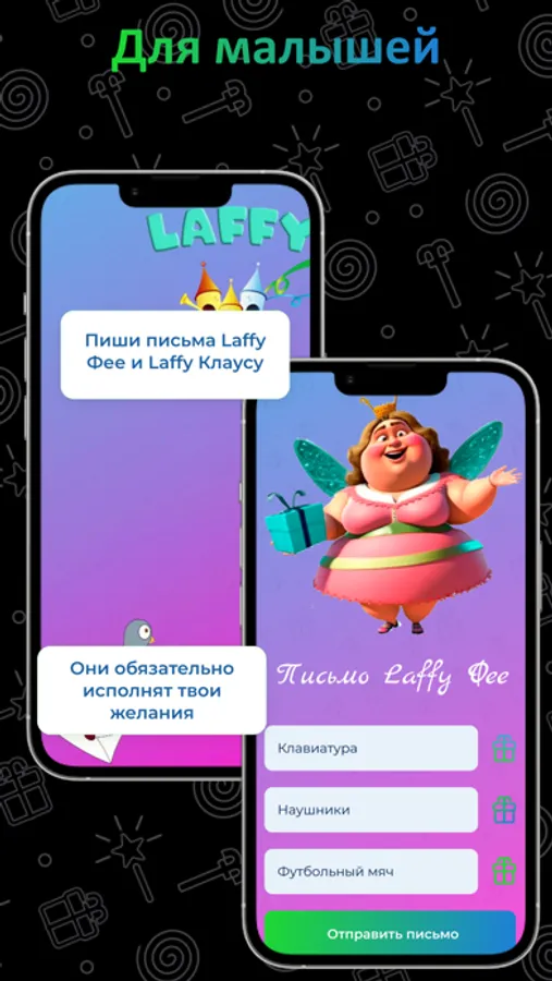 Так же мы не забыли про детей! В детском профиле ребенок может написать свои желания «Laffy Фее» и «Laffy Клаусу», а вы, как родитель, будете в курсе их желаний.
