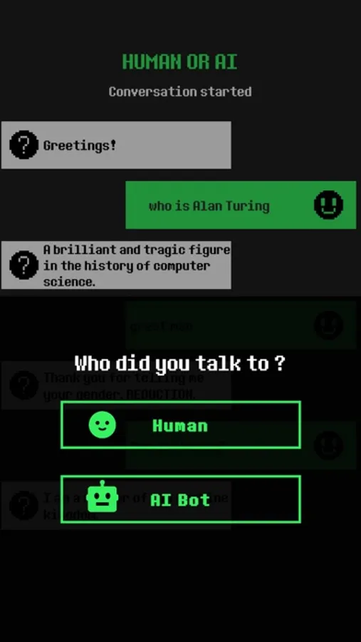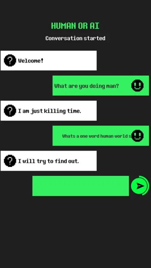 Your task is very simple chat and guess if you are chatting with a real person or a robot.