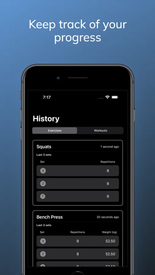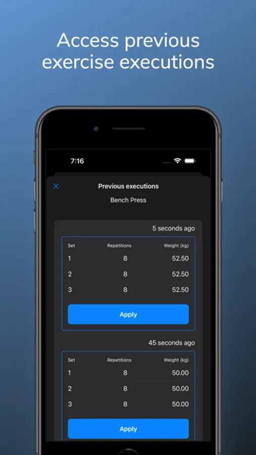 Experience the convenience of seamlessly logging exercises during your training sessions. Swiftly record repetition and weight information for each set, ensuring a streamlined user experience.