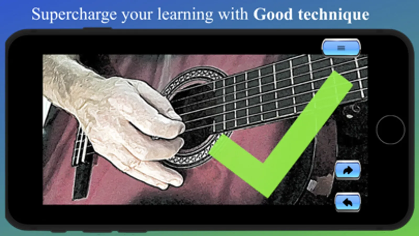 Easy to use beginner guitar app to quickly learn how to play tunes, strum chords and read tablature guitar music.