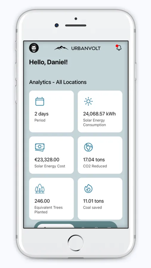 The UrbanVolt App is a one-stop shop for everything related to your clean energy journey. Here you can track your solar energy performance, marvel at your CO2 reductions, connect with our Customer Success team, manage your payments, and even share your impact with the wider community.